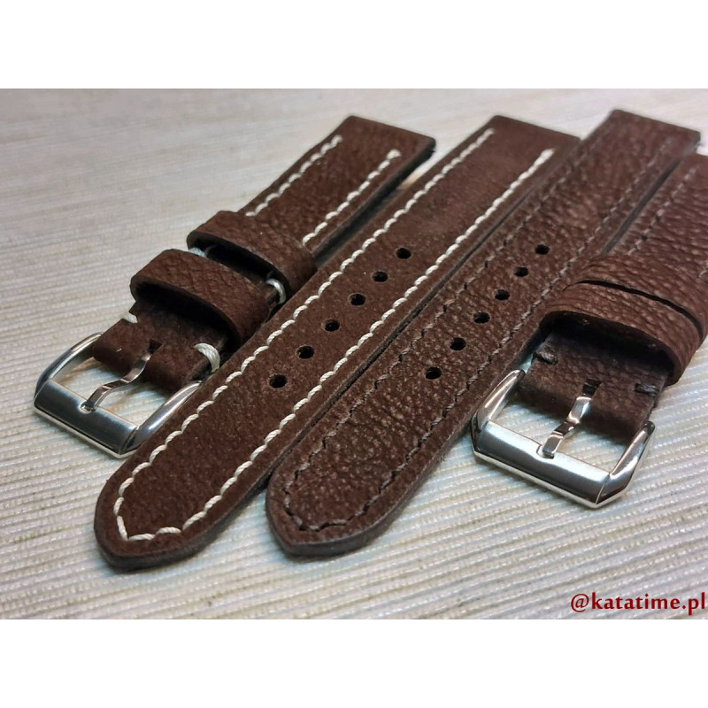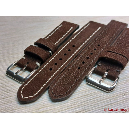 Pasek do zegarka męskiego damskiego brązowy, szyty ręcznie, naturalna skóra 18, 19, 20, 21, 22, 23, 24 mm