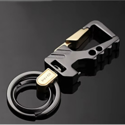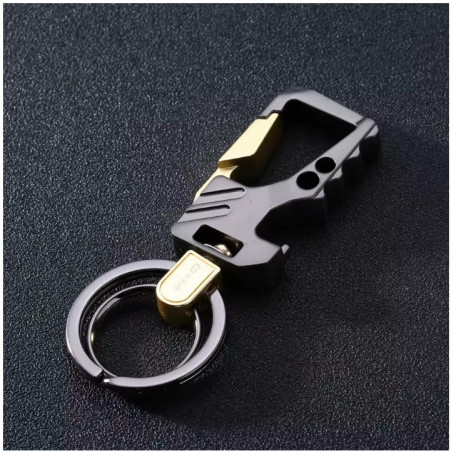 Elegancki, wielofunkcyjny, stalowy breloczek, brelok do kluczy. Oprócz funkcji elegenckiej przywieszki, ułatwiającej znalezienie kluczy w teczce, plecaku lub torebce, breloczek posiada bardzo przydatny w najmniej oczekiwanych sytuacjach karabińczyk, otwieracz do kapsli oraz dwa kółeczka pozwalające na wygodne posegregowanie większej ilości kluczy.