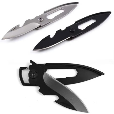 Niewielki nożyk, scyzoryk, składany, w całości wykonany ze stali nierdzewnej. Świetnie pasuje jako breloczek do kluczy. Z pewnocią każdemu przyda się nie raz w najmniej spodziewanych sytuacjach. Dla wygodnego dołączenia do kluczy w rękojeści nożyka umieszczono niewielki, wygodny karabińczyk.