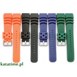 Bardzo wygodny na codzienne letnie upały i idealny do uprawiania sportów wodnych pasek do zegarka. Pasek wykonany jest z niealergizującej gumy ze stalową klamrą ze stali kwasoodpornej. Pasek idealny do zegarków nurkowych i różnego rodzaju smartwatchy z prostymi teleskopami.