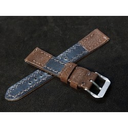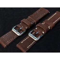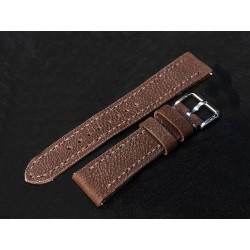 Trafił się spory kawałek pięknej, oryginalnej, delikatnie postarzanej, czekoladowo-brązowej, całkowicie matowej skóry, z fakturą przypominającą skórę rekina, idealnie nadającej się do uszycia pasków. Dzięki temu dostępne są paski w rozmiarach: 18, 19, 20, 21, 22, 23 i 24 mm (w miejscu montażu do zegarka). Spód paska został wykonany z naturalnej, czarnej skóry licowej. Boki są szlifowane, dwukolorowe (brązowo-czarne).