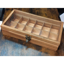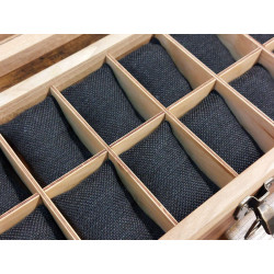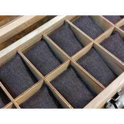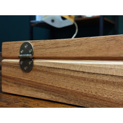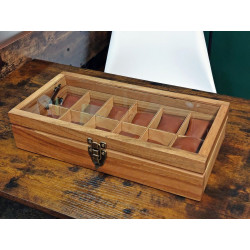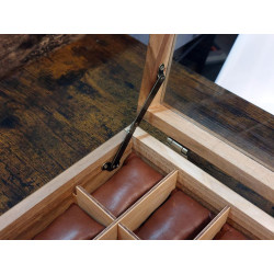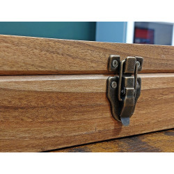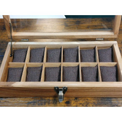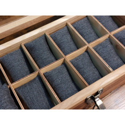 Ta skrzyneczka posłuży lata. Solidne zawiasy i zapięcie idealnie pasują do rustykalnego stylu całości. Kieszonki na zegarki są duże i głębokie, świetnie zabezpieczają zegarki przed uszkodzeniem oraz porysowaniem przez np. koronkę sąsiada, wygodnie zmieszczą się zegarki o szerokości nawet 55 mm! Szkło w wieczku skrzyneczki jest odpowiedniogrube, dzięki czemu ma podniesioną odporność na stłuczenia. Warto popatrzeć na szczegóły wykonania. Pudełko jest podklejone filcem.