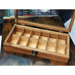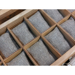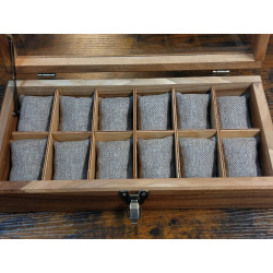 Elegancka i funkcjonalna, w całości ręcznie robiona, piękna skrzyneczka ze starego, długo sezonowanego drewna orzecha włoskiego do przechowywania 12 zegarków. Wykonanie z pełnego drewna, szlifowanego i olejowana naturalnym olejem lnianym*. Drewno orzechowe jest drewnem wyjątkowo dekoracyjnym dzięki niezwykłej, bogoatej kolorystyce, wystarczy popatrzeć na zdjęcia. Jest też twarde i ciężkie. Skrzyneczka wykonana z tego drewna gwarantuje jakość, przyciąga oko, jest nie tylko domem dla twojej kolekcji zegarków, ale także ozdobą każdego wnętrza.