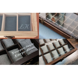 Przy indywidualnych zamówieniach, za dopłatą, skrzyneczki mogą zostać także spersonalizowane grawerem na drewnie lub metalowym medalionie.