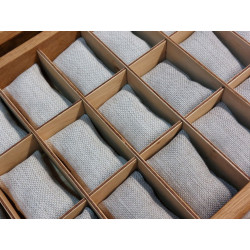 Poduszeczki są wykonane z mocnego, wytrzymałego materiału obiciowego o podwyższonej odporności na zabrudzenia i rozdarcia, w kolorze naturalnego, brązowego płótna. Są elastyczne, dzięki czemu można na nich zapiąć zegarki w różnych rozmiarach, na paskach i bransoletach. Poduszeczki lubią się gubić, dlatego jedna jest dołożona dodatkowo. Kolor i fakturę poduszek można sobie wybrać (najlepiej przed zakupem). Kolory poduszek zostały pokazane na zdjęciach.