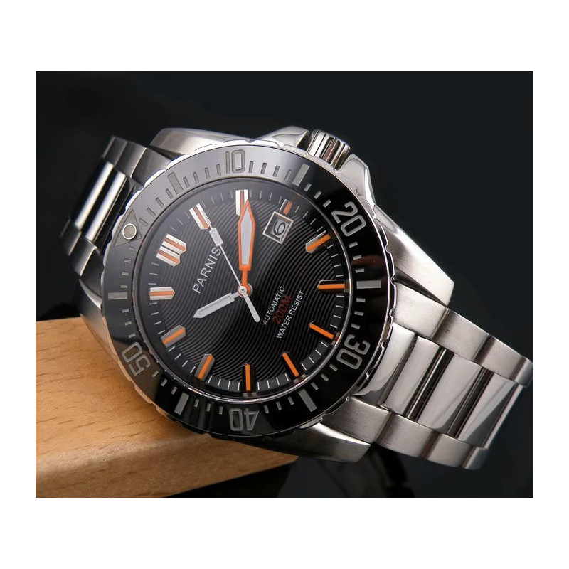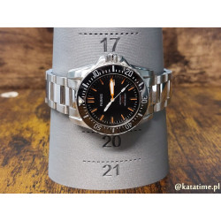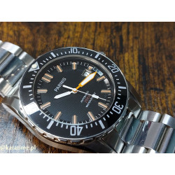 Ot, niedrogi, ale wyglądający jak milion dolarów, męski zegarek w stylu najlepszych zegarków nurkowych. Zegarek posiada wszystko, czego można oczekiwać od fajnego, codziennego zegarka na męskim nadgarstku - oryginalny design, koperta ze stali nierdzewnej, chirurgicznej, niealergizującej, odpowiednią wielkość 43 mm, szafirowe, odporne na zarysowania szkło, automatyczny mechanizm (nakręcanie przy noszeniu), czytelność odczytu w każdych warunkach. A na dodatek w komplecie stalowa bransoletka i skórzany, czarny pasek z motylkową klamrą. Czego potrzeba więcej?