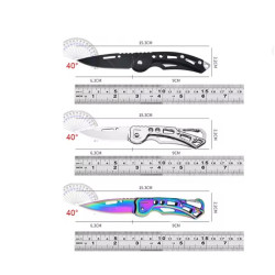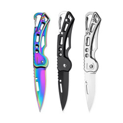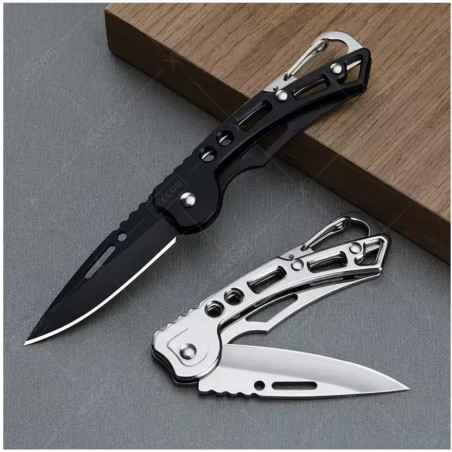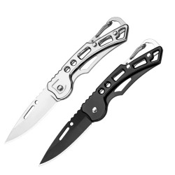 Niewielki nożyk, scyzoryk, składany, w całości wykonany ze stali nierdzewnej. Świetnie pasuje jako breloczek do kluczy. Z pewnocią każdemu przyda się nie raz w najmniej spodziewanych sytuacjach. Dla wygodnego dołączenia do kluczy w rękojeści nożyka umieszczono niewielki, wygodny karabińczyk.
