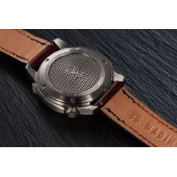Nadir Vespera jest gotowy na przygodę . To idealny zegarek do wszelkich aktywności na świeżym powietrzu, niezależnie od tego, czy chodzi o wędrówki, jazdę w terenie czy motocyklem. Przesunięte koronki i płaska koperta (o grubości 12,3 mm) sprawiają, że idealnie nadaje się do wsunięcia pod rękaw kurtki motocyklowej. Staraliśmy się w tym zegarku połączyć ponadczasową elegancję i praktyczność. Jesteśmy pewni, że stanie się on Twoim ulubionym towarzyszem codziennych przygód i podróży, m.in. dzięki naszej wyjątkowej funkcji podwójnej sterefy czasowej w stylu kompresora.