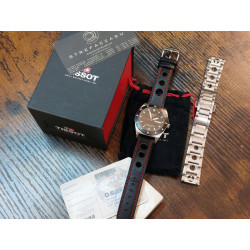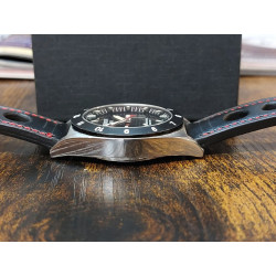 Zegarek ma założony nowy pasek w klimacie zegarków związanych ze sportami motoryzacyjnymi.