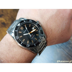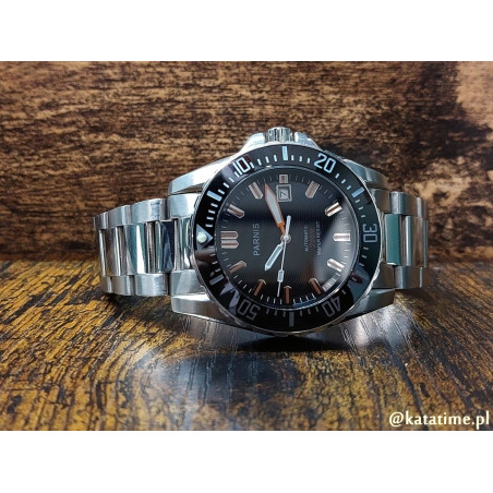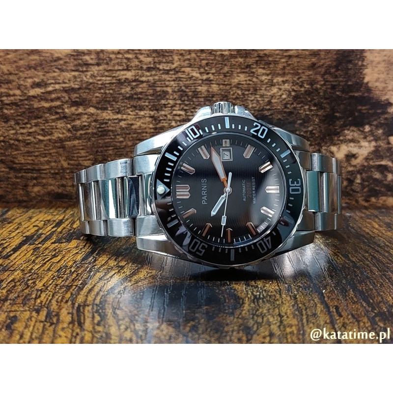 Ot, niedrogi, ale wyglądający jak milion dolarów, męski zegarek w stylu najlepszych zegarków nurkowych. Zegarek posiada wszystko, czego można oczekiwać od fajnego, codziennego zegarka na męskim nadgarstku - oryginalny design, koperta ze stali nierdzewnej, chirurgicznej, niealergizującej, odpowiednią wielkość 43 mm, szafirowe, odporne na zarysowania szkło, automatyczny mechanizm (nakręcanie przy noszeniu), czytelność odczytu w każdych warunkach. A na dodatek w komplecie stalowa bransoletka i skórzany, czarny pasek z motylkową klamrą. Czego potrzeba więcej?